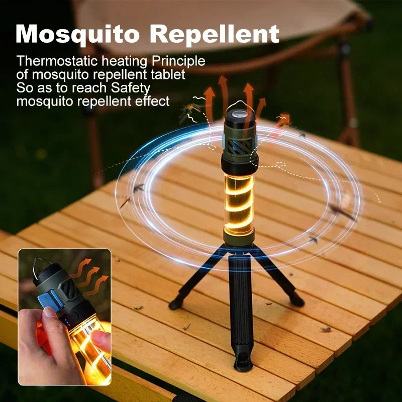Camping Light Rechargeable 3 in 1 Tent Lantern Waterproof Camping Night Fishing Lamp with Triangle Bracket for Outdoor Camping