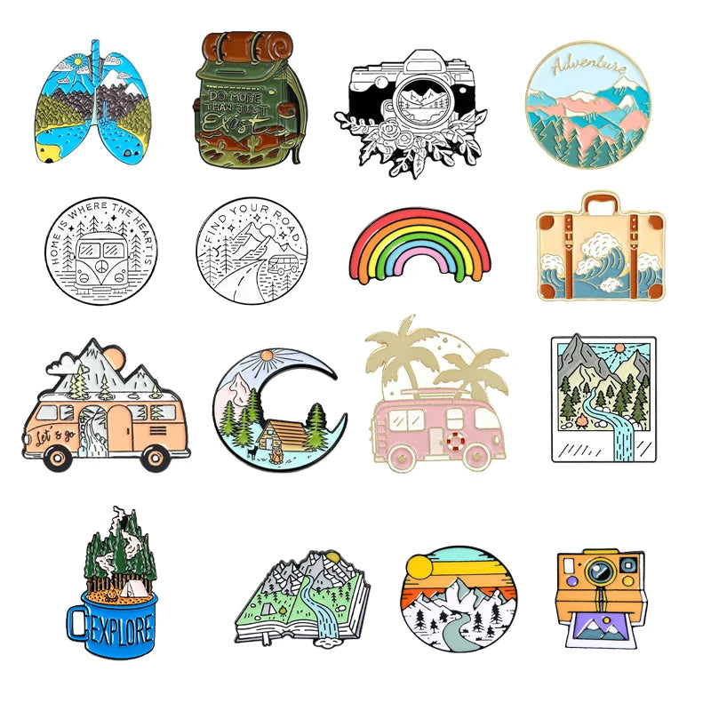 Outdoor Travel Badge Creative Cartoon Camping Tent Hiking Metal Enamel Brooch Fashion Adventure Lapel Backpack Jewelry Gift